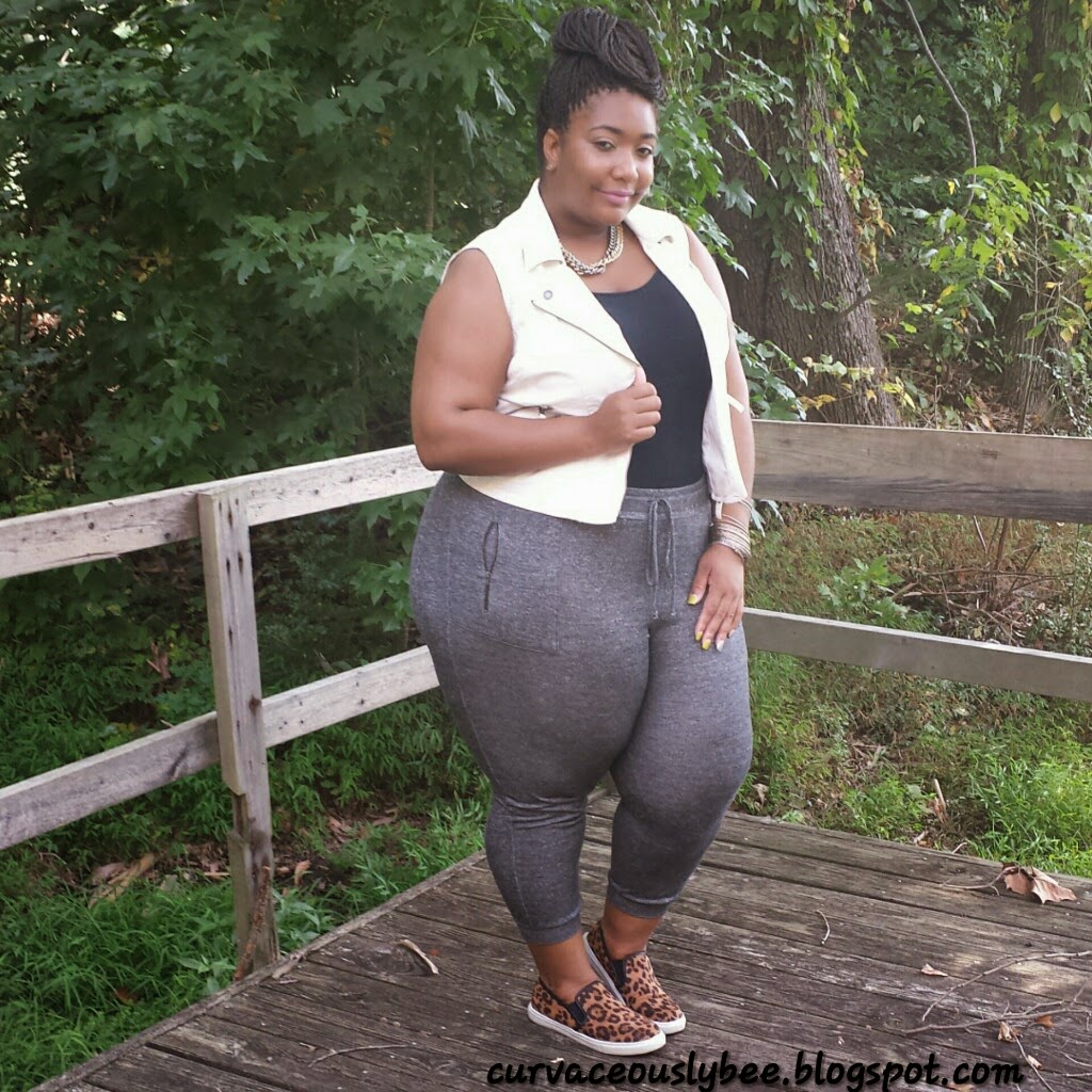 I love the dressed up/dressed down style that joggers can create and decided to give it a try. The joggers are a great fit and true to size with zipper detailing on the pockets. I added a leather vest to create a layering effect while also adding a different texture. The comfy leopard slip-ons are a great fit for a day of walking.