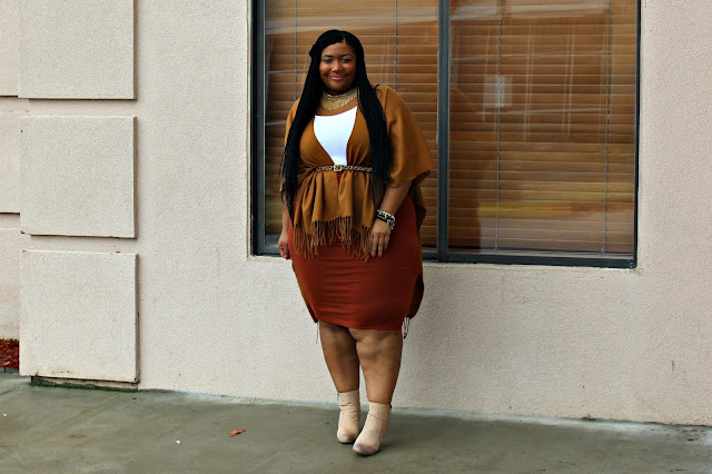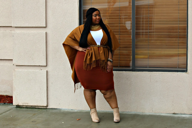 This is an outfit everyone needs. I feel like this outfit is date night approved, with TIGHTS it’s church approved and work house approved. The poncho covers the assets and the belt highlights my waist as well as creating a “cape” silhouette.